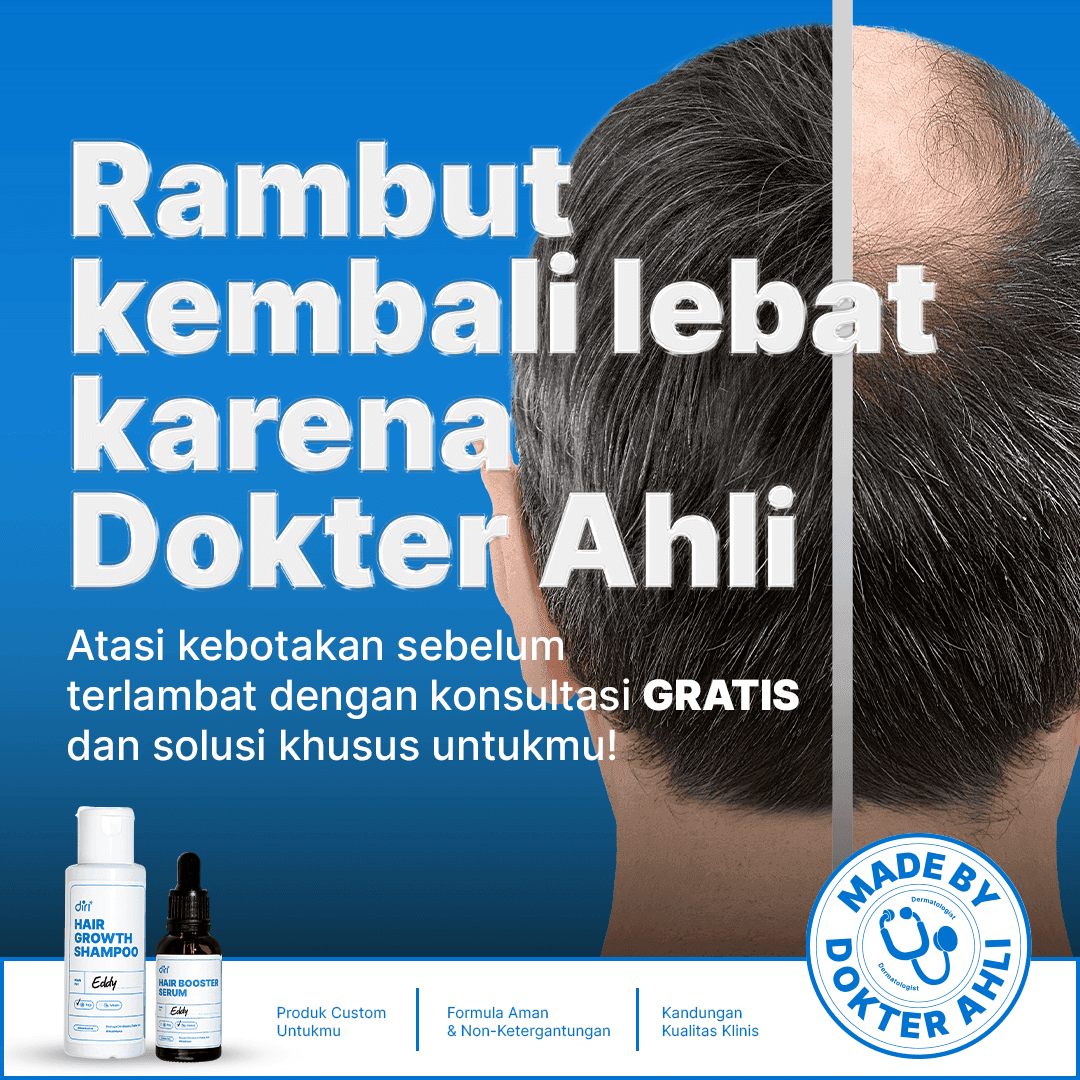 Kebotakan di seluruh kulit kepala maupun beberapa area saja (pitak) bisa terjadi pada pria maupun wanita. Penyebab kebotakan sendiri cukup beragam, diantaranya karena faktor genetik, hormon, usia, dan tingkat imunitas. Selain itu, faktor eksternal seperti menggunakan produk rambut yang salah, infeksi, kurang nutrisi, dan stres juga berperan dalam kebotakan. Siapa saja bisa mengalami kebotakan, bahkan dalam usia yang relatif muda. Untuk mengatasi ini, perlu perawatan dan pengobatan untuk mengembalikan volume rambut, bisa dengan obat luar yakni serum dan shampoo, dan juga obat dalam yang membantu dorongan hormon. Konsultasikan secara GRATIS dengan dokter ahli di Diri Digital Clinic dan dapatkan solusi yang tepat untukmu!